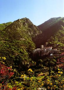 St. Paul is built beside a torrent among the southwest foothills of Mt. Athos, 20 minutes walk from the sea. It was probably founded by St. Paul of Xiropotamos and took its name from him. In 1370 it was given to the Serbian monks Gerasimos, Radonnios and Antonios. It was given great assistance by the Serbian ruler Georgios Brankovich. Its Catholicon dates from the years 1839-1844 and its feast day is on February 2. Among the monastery’s relics the best known are the Gifts of the Magi which were donated by the princess Mara, wife of the Sultan Murat I. Legend has it that she tried to present the gifts to the monastery herself but she was stopped on the dock of the port by a voice form heaven telling her that a Queen already stays on Mount Athos, the Virgin Mother. The library holds 494 manuscripts and 12.500 printed works. The monastery is the 14th in the hierarchy of Mt. Athos.