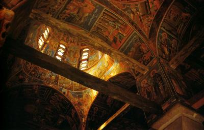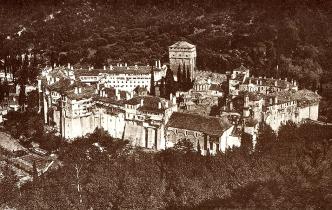 Chelandariou is built n the northeast side of Mt. Athos, half an hour’s walk from the sea. It was founded in the 10th century by a monk named Georgios and yielded in 1198 to the Serbian ruler Stephan Nemanja and his son Ratsko who became monks under the names Simeon and Savvas respectively. At this time emperor Alexios III gave the ruined monastery of Chelandariou to them by a chrysobul, to be used as a residence by all Serbians following the monastic life. Its Catholicon is mostly of the 14th century, with frescoes of the same period. The monastery’s feast day is the Prsentation of the Mother of God on November 21. In the monastery we find the icon of Theotokos Tricherousa and the tomb of the founder St. Simeon, from which has sprouted a grapevine. The valuable relics of the monastery are kept in a modern vestry while its library contains 181 Greek and 809 Slavic manuscripts and 20.000 printed works. The monastery is 4th in the hierarchy of Mt. Athos. It is inhabited by Serbian-speaking monks.