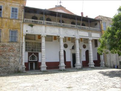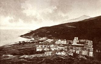 Iviron is built approximately in the center of the northeast side of Mt. Athos, near the sea. It was founded in 980 by the Iberian (Georgian) high ranking palace officer John and his son Euthimios, disciples of St. Athanasios the Athonite and received its name from them. The Catholicon is of the 11th century and its feast day is the Assumption on August 15. The monastery was burned in 1865 but was rebuilt. The chapel in the church courtyard is where the miraculous icon of the Panaghia Portaitissa is kept. Among the relics is the so-called robe of the Emperor John Tsimiskis, Episcopal vestments of the ecumenical patriarchs Dionysios IV and Gregorios V, as well as a 7-branched candelabra in the shape of a lemon tree, made of gold and silver, a gift from the Greeks of Moscow in 1807. The library contains approximately 2.000 manuscripts and 15.000 printed works. The monastery is 3rd in the hierarchy of Mt. Athos.