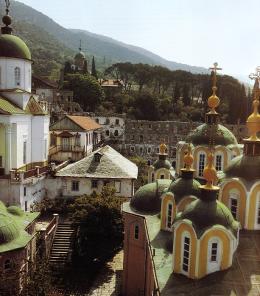 Panteleimonos is built near the sea on a bay on the southwest of Mt. Athos between the monastery of Xenophontos and Daphne. Construction of the monastery in its present form started in 1803. The old monastery was one hour from the present location, where the so called Paliomonastiro is today. The old deserted monastery was bought by Lavrentios, a Russian abbot from the existing at the time monastery of Xylourgou. The are no reports for the monastery between the 11th to 14th century. In the 15th century it was inhabited by Greeks until mid 18th century. The monks then left their position and started the new monastery by the sea. Its Catholicon is of the period 1812-1821 and was built with the help if the ruler of Moldavia-Wallachia Skarlatos Kallimachis. The monastery’s present architectural form is the result of reconstruction by the Russians who won control in 1875, electing their own abbot. The monastery has a magnificent belfry containing a huge bell weighing 13 tons. Its library contains 1.320 Greek and 600 Slavic manuscripts and 20.000 printed works. The monastery is the 19th in the hierarchy of Mt. Athos. It is inhabited by Russian-speaking monks.