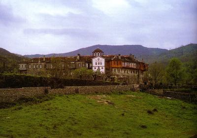 Philotheou is built on a plateau on the northeast side of Mt. Athos near the monastery of Karakallou. It was founded towards the end of the 10th century, possibly by the monk Philotheos, from whom it received its name. the Catholicon dates from the year 1746 and was frescoed in 1752. A fire in 1871 destroyed the monastery save the Catholicon and the library. Its feast day is the Annunciation of the Virgin Mother. The most important relic of the monastery is the icon of Theotokos Glykofiloussa, the Crucifixion, a piece of the True Cross, the right hand of St. John Chrysostomos and others. Among those who lived in this monastery were St. Dionysios, who later founded the monastery of Agia Trias on Olympos and the apostle Kosmas Aetolos. The library contains around 250 manuscripts and many printed works. The monastery is the 12th in the hierarchy of Mt. Athos.