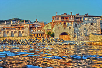 Mount Athos, also called Agion Oros (Holy Mountain) is a unique male monastic society. It is located on a peninsula in Chalkidiki, in Northern Greece just some 130kms from Thessaloniki, an interesting city of byzantine tradition.